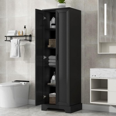 Angel Sar 5 Tier Tall Narrow Bathroom Cabinet with 2 Adjustable Shelves, 2 Fixed Shelves & 2 Doors, Anti-Tipping Storage Cabinet
