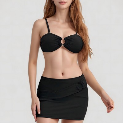 Anna-Kaci Swim Women's 3-Piece Bikini Set with Ring Front Bandeau Top High Waist Bottom and Matching Cover-Up Skirt