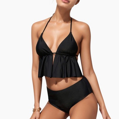 Anna-Kaci Swim Women's Halter Bikini Set with Ruffle Tank Style Top and High Waist Bottoms