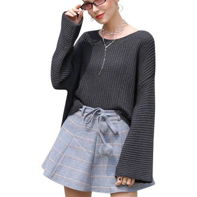 Anna-Kaci Women's Lantern Long Sleeve Round Neck Solid Color Pullover Knitted Sweater