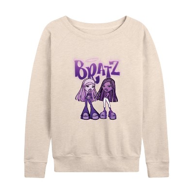 Women's - Bratz - Purple Power Dolls Lightweight French Terry Wide Neck Long Sleeve Graphic Shirt