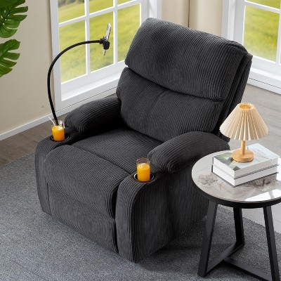 Manual Recliner Chair in Dark Gray Corduroy, Plush Armchair with Phone Holder & 2 Cup Holders, 32.4"x39.57"x38.78"H