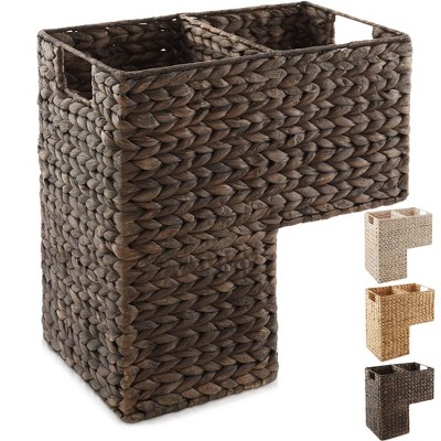 (Set of 2) Casafield Water Hyacinth Waste Baskets - Natural, Woven Trash Bins for the Bathroom, Bedroom, Laundry Room, Home Office