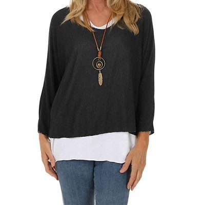 Catherine Lillywhite's Womens Half Sleeve Tunic With Necklace, Black, One Size