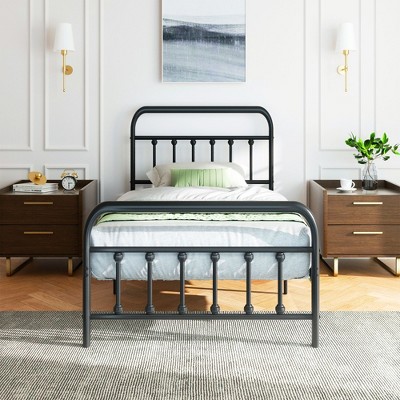 Celebalcony Twin Size Metal Platform Bed Frame with Headboard & Footboard, Steel Slat Mattress Foundation,Under Bed Storage No Box Spring Needed,Black