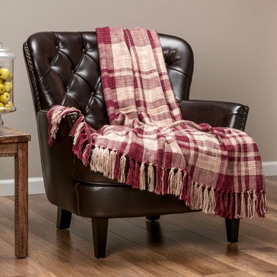Chanasya Farmhouse Plaid Throw Blanket Knit Decorative Blanket