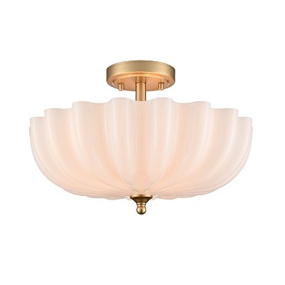 Claxy Gold 3-Light Semi Flush Mount Ceiling Light Brass with Milk Glass