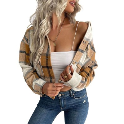 Women's Cropped Plaid Cardigan Shirt, Retro Long Sleeve Jacket for Casual & Vintage Style Outfits