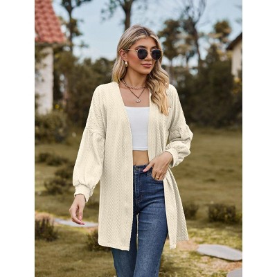 Women's Long Knit Cardigan with Textured Design - Casual Layering Piece for Outdoor Wear