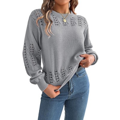 Clearlove Women's Artisan Lace-Knit Balloon Sleeve Sweater Textured Relaxed Silhouette for Layered Comfort
