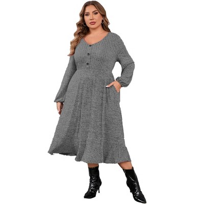 Clearlove Women's Plus Size Knit Textured Sweater Dresses Long Sleeve Loose Pleated Dress with Pockets