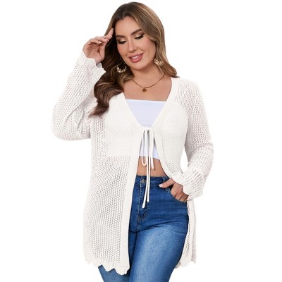 Lightweight Crochet Cardigan Sweater Rib Knit Open Front Sweater Coats