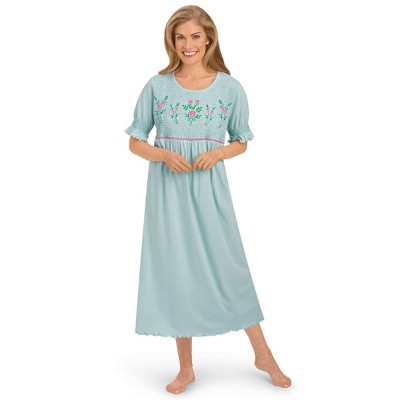 Collections Etc Floral Embroidered Smocked Bust Short Sleeve Nightgown