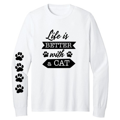 Collections Etc Life is Better With a Cat Long Sleeve Graphic T-Shirt