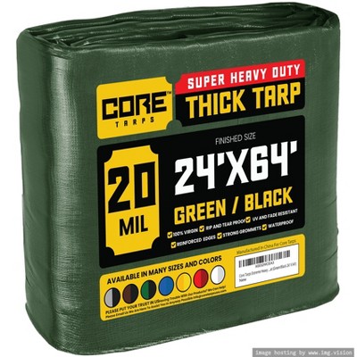 Core Tarps Heavy Duty 20 Mil Tarp Cover, UV Resistant, Rip Proof for Roof, Camping, Patio, Pool, Boat