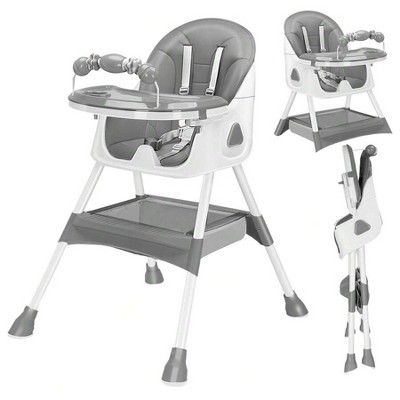 CAPPSLEE Foldable 5-in-1 Baby & Toddler High Chair with Adjustable Recline, Footrest, PU Seat Pad and Dual Trays