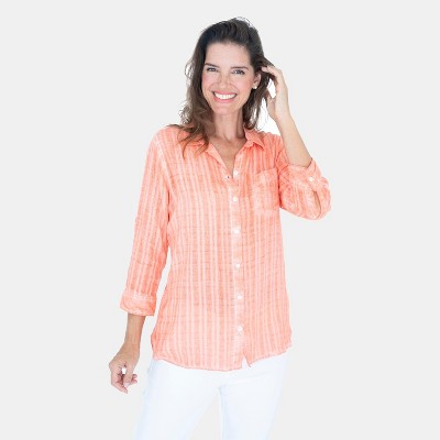 da-sh Women's Roll Tab 3/4 Sleeve Garment Washed Coral Blouse