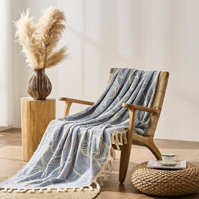 DOWN HOME Chenille Cotton Boho Throw Blanket Soft Lightweight Woven Decorative Blanket with Tassel Gift