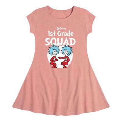 Girls' - Dr. Seuss - 1st Grade Squad Thing 1 and Thing 2 Fit & Flair Cap Sleeve Graphic Dress