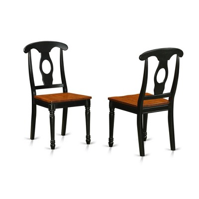 East West Furniture,Kenley Kitchen Dining Chairs - Napoleon Back Solid Wood Seat Chairs, Set of 2, Black & Cherry