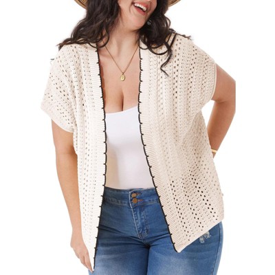 Women's Plus Size Half Sleeve Open Front Cardigan Sweater Lightweight Solid Causl Crop Knit Shrug