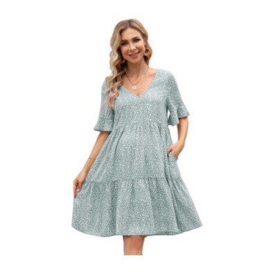 Women's Ruffled Short Sleeve Printed Maternity Babydoll Dress