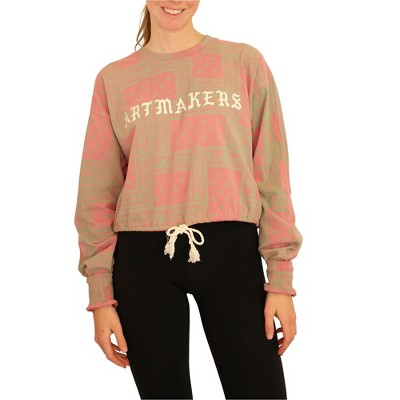 Elevenparis Womens Cropped Drawstring Graphic T-Shirt