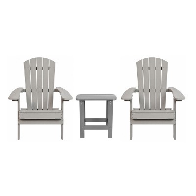 Emma and Oliver Set of 2 Harmon Modern All-Weather Poly Resin Adirondack Rocking Chairs with Side Table for Outdoor Use