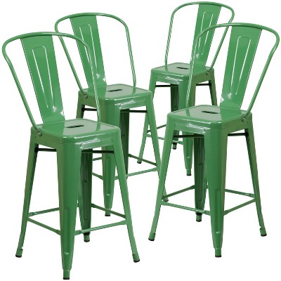 Emma and Oliver Commercial Grade 4 Pack 24" High Metal Indoor-Outdoor Counter Height Stool with Back