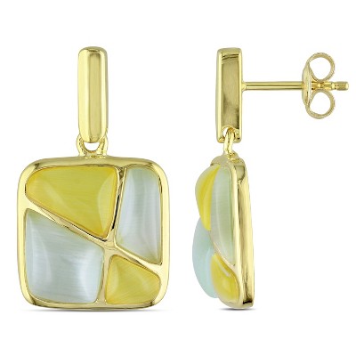 EVERLY JEWELRY | Yellow Plated Sterling Silver Light Green and Yellow Simulated Cat Eye Geometric Earrings