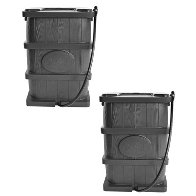FCMP Outdoor 50-Gallon BPA Free Flat Back Home Rain Catcher Water Storage Collection Barrel for Watering Outdoor Plants & Gardens, Black (2 Pack)