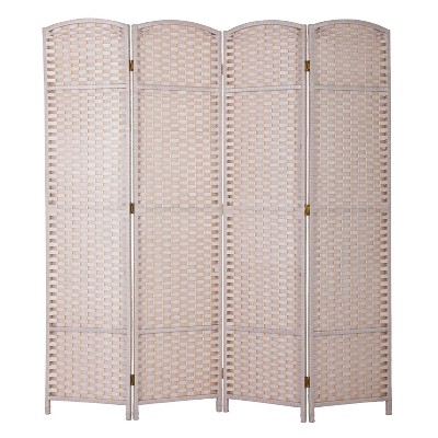 FDW Round Top Woven Room Divider 4/6/8-Panel Foldable Partition Screen for Home Office