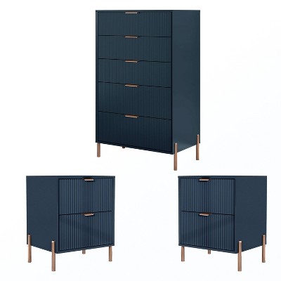 Festivo 3pc Modern Elegance 2 Drawer Nightstands and 5 Drawer Chest Set Navy
