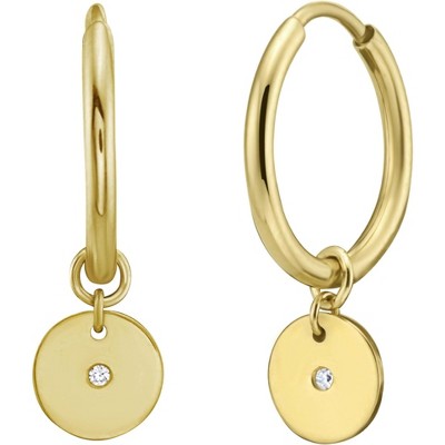 14k Yellow Gold 20mm Disc Diamond Charm Hoop Gemstone Earrings