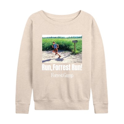 Women's - Forrest Gump - Run Forrest Run Lightweight French Terry Wide Neck Long Sleeve Graphic Shirt