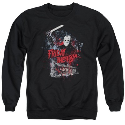 Friday The 13th Mask In Mirror Crew Neck Long Sleeve Black Adult Sweatshirt