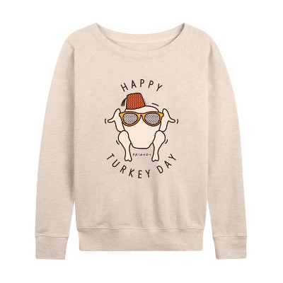 Women's - Friends - Happy Turkey Day Lightweight French Terry Wide Neck Long Sleeve Graphic Shirt