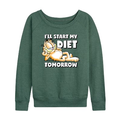 Women's - Garfield - Start My Diet Tomorrow Lightweight French Terry Wide Neck Long Sleeve Graphic Shirt
