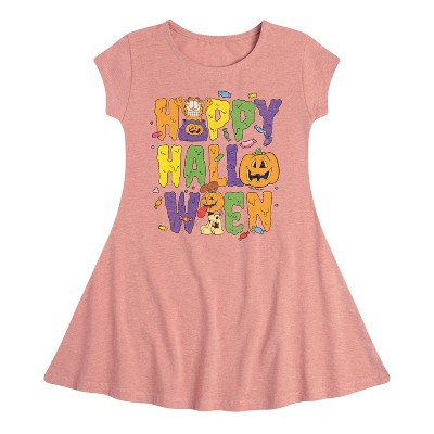 Girls' - Garfield - Happy Halloween Icons Fit & Flair Cap Sleeve Graphic Dress
