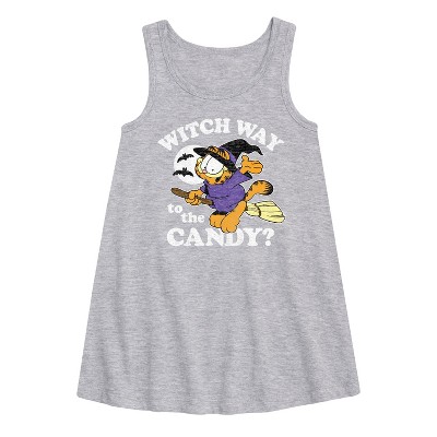 Girls' - Garfield - Witch Way To The Candy Graphic Sleeveless Aline Dress
