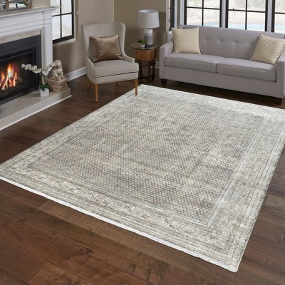 Gertmenian Florance Modica Distressed Traditional Border Gray Beige Indoor Viscose Acrylic Area Rug with Fringe
