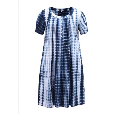 Women's Plus Size Tie Dye Pleated V Neck Ruffle Sleeve Casual Holiday Blouses - GRACE & GRANDEUR