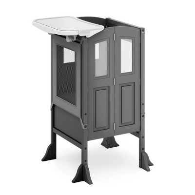 Guidecraft Kitchen Helper Toddler Tower & Mealtime and Play Tray Bundle: Martha Stewart White Folding, Adjustable Step Stool & Detachable Tray Table