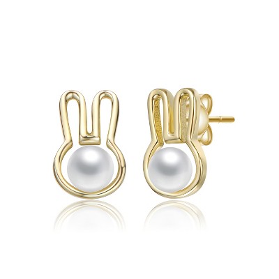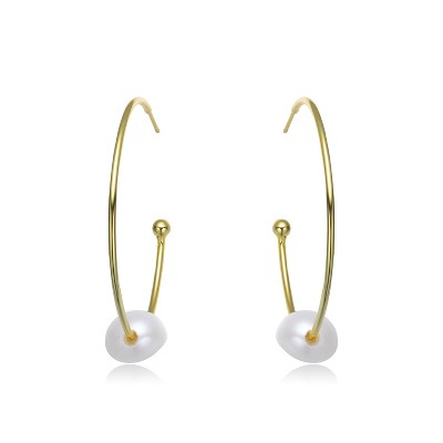 Guili Sterling Silver 14K Yellow Gold Plated Earrings with White Freshwater Pearl, Featuring Ribbon Half-Hoop Drop Design for Elegance