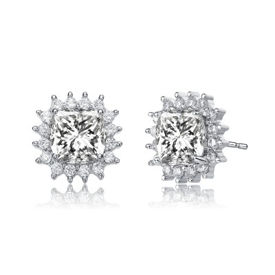 Guili Classy 10mm Halo Square Stud Earrings with Cubic Zirconia – Elegant, Sparkling & Timeless in White, Yellow, Gold, Rose Gold & Green