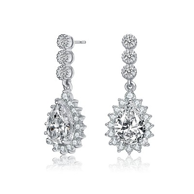 Guili Sterling Silver Rhodium Plated Pear and Round Cubic Zirconia Halo Drop Earrings, a Perfectly Crafted Symbol of Style and Grace
