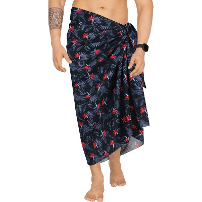 HAPPY BAY Men's Holidays Cover-Up Beach Lava Lava For Men Swim Trunk Summer Long Pareo Regular Samoan Swimwear One Size Azure, Leaves