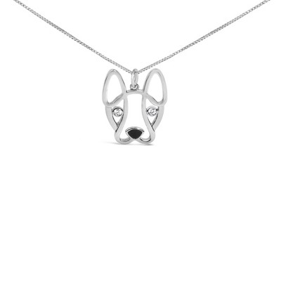 Haus of Brilliance Silver Diamond Accent and Black Enamel French Bullldog Pendant Necklace inch
