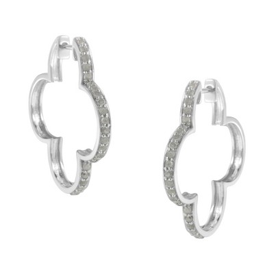 Haus of Brilliance Silver 1.0 cttw Diamond 4 Leaf Clover Shape Hoop Earrings