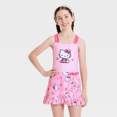 Girls' Hello Kitty Gingham One Piece and Skirt Set - Pink